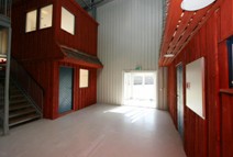 Lokalene er på 450 kvm i grunnflate med 300 kvm 2.etasje. Videre 3 store kontorer, kjøkken, spiserom, gjestetoalett, bad med dusj, wc og vask. Foruten hovedinngang er det egen inngang til kjøkken og spiserom, samt leddport i enden av bygget. Rikelig med parkeringsplasser. Samlet flate for bygget utgjør ca. 750 kvm.